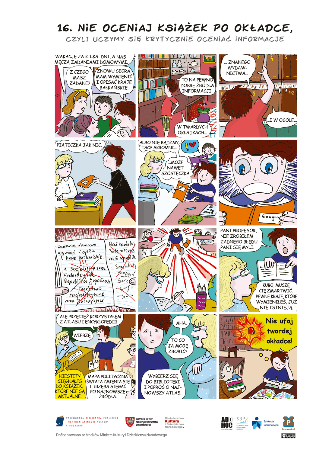 - wywiesić w bibliotece, w miejscu, w którym często przechodzą dzieci lub na coś czekają,